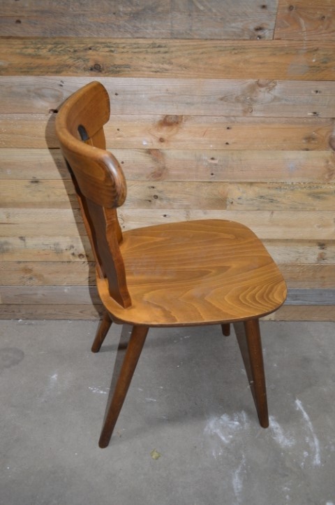 Deze mooie halfronde caféstoel uit de jaren 50 is ideaal om gebruikt te worden in een kleine ruimte. Deze beukenhouten stoel past erg goed in vrijwel iedere keuken of eetkamer en is hij bovendien gemakkelijk schoon te maken.