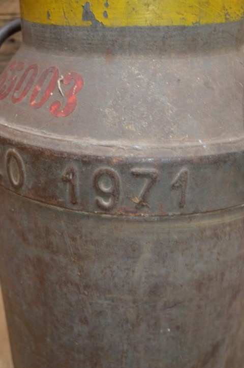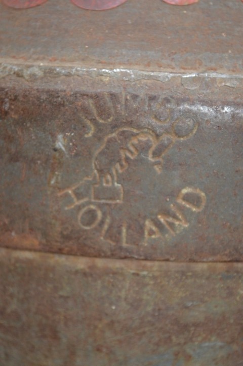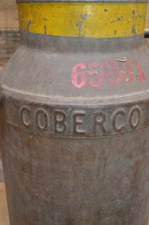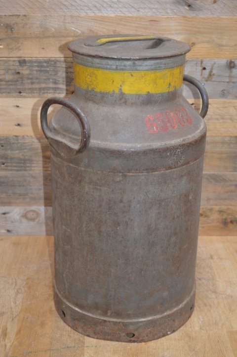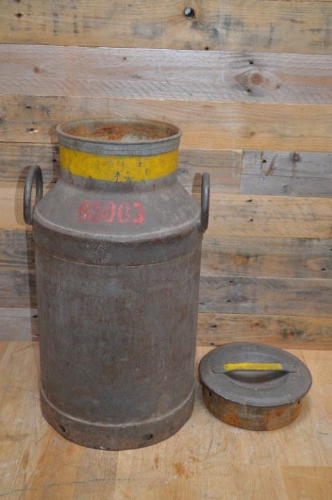 Deze metalen melkbus werd gebruikt voor Jumbo Holland en draagt het boerderijnummer 65003. Het rood geschilderde nummer gaf destijds aan dat de melk apart gewogen en bemonsterd moest worden, omdat er nog melk van de vorige avond in zat. Een prachtig detail dat dit object zijn unieke geschiedenis geeft.