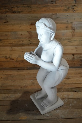Deze dame in bikini staat klaar om te duiken – een vrolijke en expressieve verschijning met een Rubensiaans postuur. Haar ronde vormen, speelse houding en zelfverzekerde uitstraling maken haar tot een echte blikvanger. Het beeld is gemaakt van duurzaam beton en prachtig gedetailleerd. Of ze nu in de tuin staat, naast het zwembad of in de woonkamer: deze blote, stevige dame straalt levenslust uit en brengt gegarandeerd een glimlach. Perfect voor wie houdt van kunst met een knipoog.