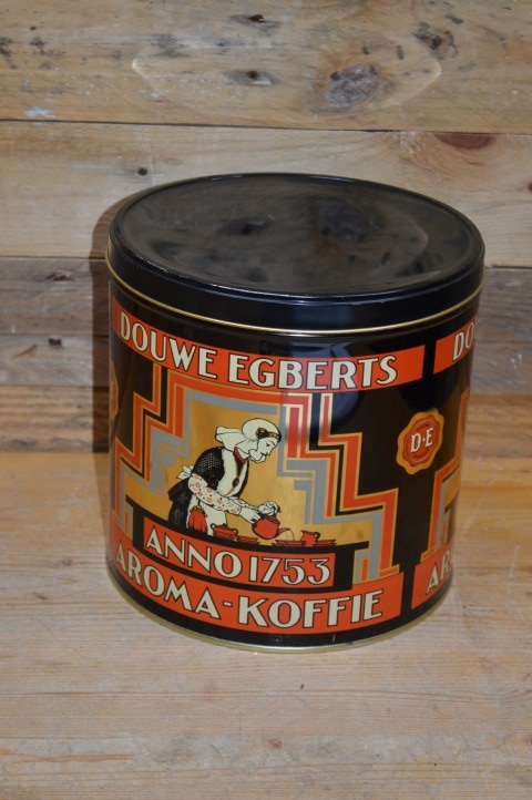 Dit ouderwetse ronde blik van Douwe Egberts is ideaal om kleine spulletjes zoals elastiekjes en paperclips in te bewaren, maar is daarnaast ook erg leuk om te gebruiken als koekblik of om bijvoorbeeld als decoratie op een dressoir of in de vensterbank neer te zetten.