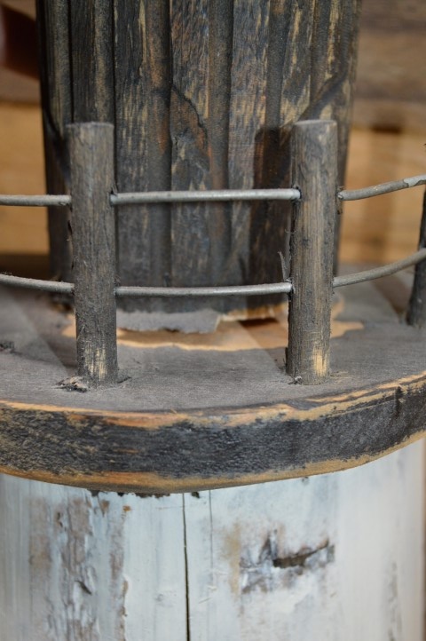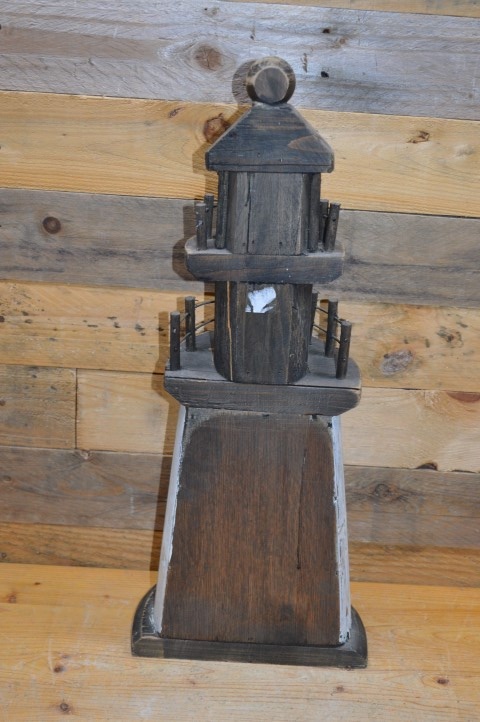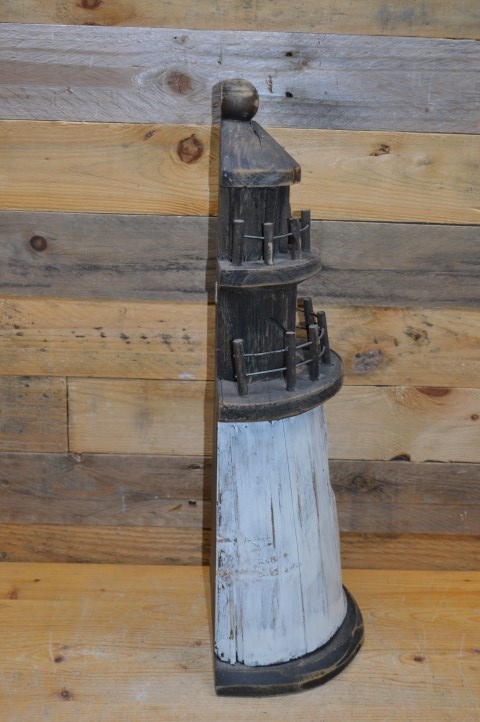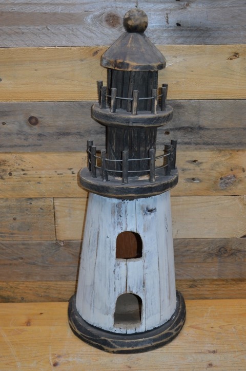 Houten halve vuurtoren voor decoratie en ook leuk om verlichting in te maken. Uitgevoerd in moderne sobere natuurlijke kleuren.