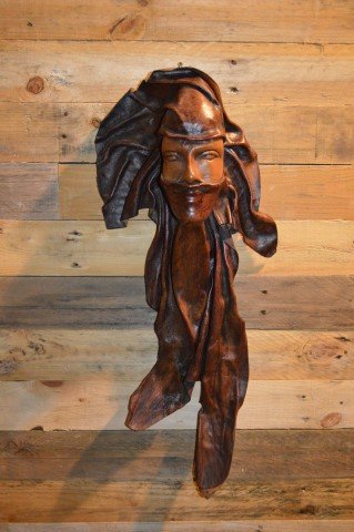 Dit leren masker van een Toeareg of Bedoeïenen vrouw is vervaardigd door reststukken nat leer strak over een mal te spannen en te laten drogen. Het resultaat is een gedetailleerd, ambachtelijk en handgemaakt decoratief masker dat karakter toevoegt aan iedere muur en perfect past in vrijwel elk interieur.