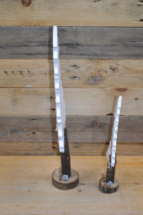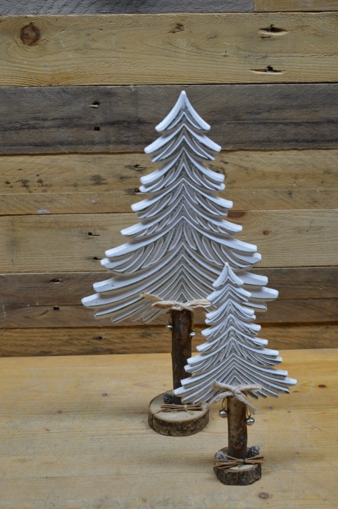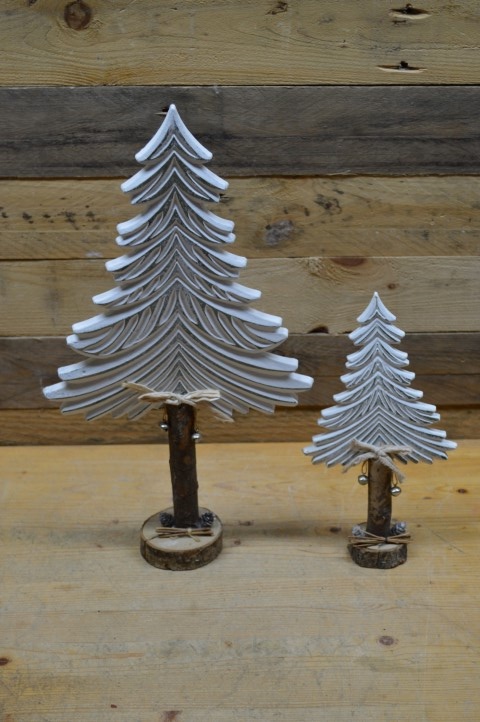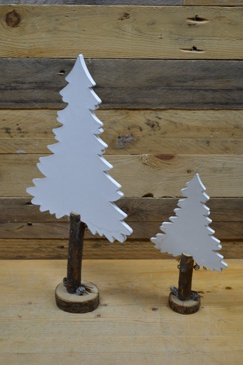 Dennenboompjes van hout, leuke creatieve decoratie die niet alleen met kerstmis gebruikt kan worden. Set van 2, dennenbomen, een grote en een kleine. De mooie natuurlijke kleur van een besneeuwde dennenboom geeft wat gezelligs aan uw kamer.