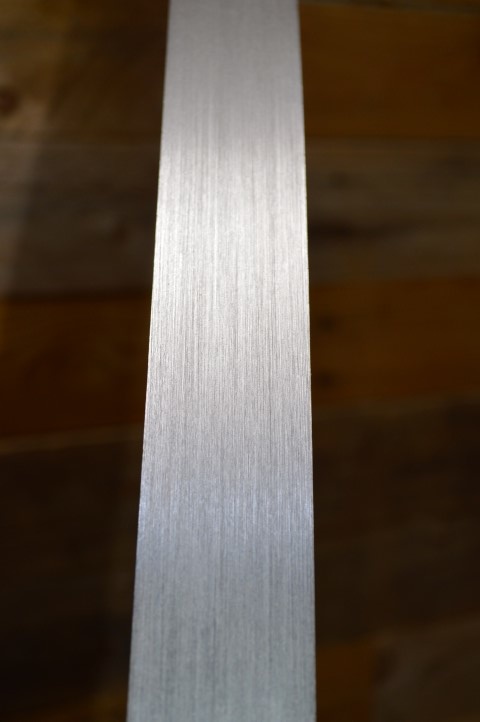 Afgezien van een barstje in het witte kapje verkeert deze moderne staande lamp van geborsteld metaal nog in goede staat en is dit een hele mooie minimalistische vloerlamp die in ieder interieur goed past.