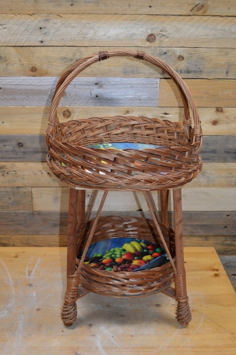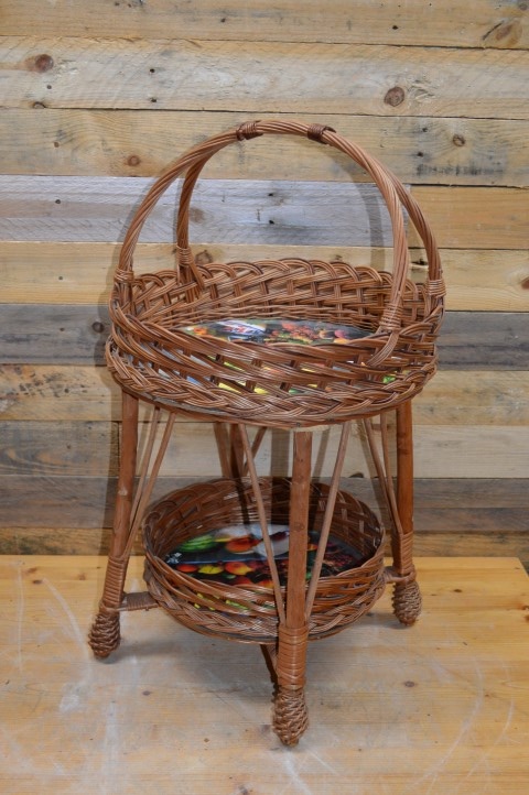 Dit vrolijke gevlochten dienblad op poten met 2 verdiepingen is niet alleen praktisch, maar fleurt ook iedere kamer op met het mooie bloemmotief. Handig voor als u geen ruimte hebt op tafel om het dienblad neer te zetten dankzij de poten, maar ook als decoratie voor binnen of buitenshuis is dit dienblad erg geschikt. Ook als u hem ergens anders neer wilt zetten is dat zo gedaan, dankzij de stevige gevlochten handgreep.