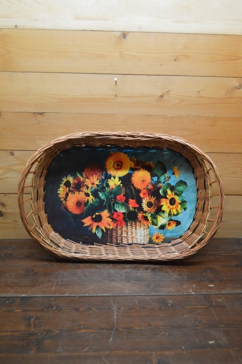 Handig groot dienblad met goede stevige handgrepen waarvan de rand is gevlochten met wilgentenen. Super dienblad om mee naar buiten te nemen als u met gasten op het terras zit of gezellig op het balkon.