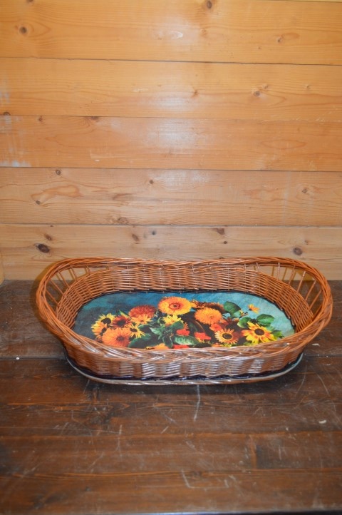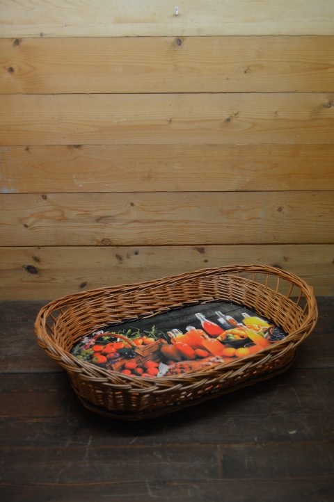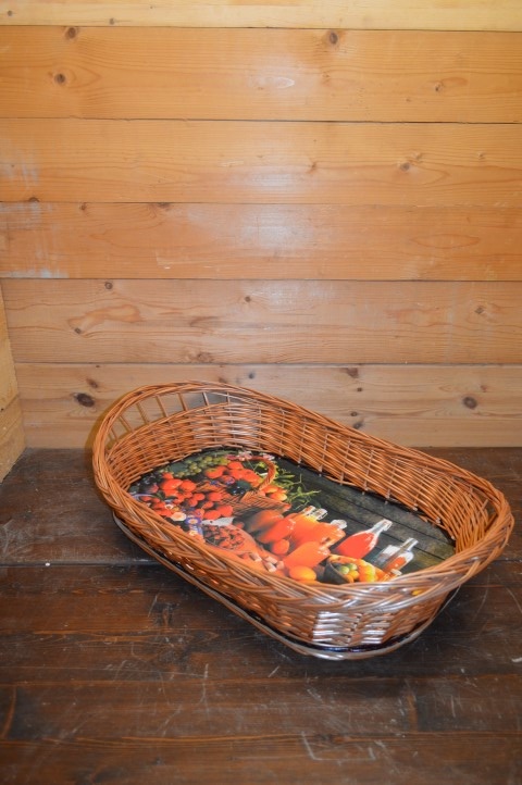 Landelijk dienblad waarbij de opstaande randen gemaakt zijn van gevlochten riet. Ambachtelijk hand vlechtwerk en degelijk natuurlijk materiaal. Voor thuis of bij een bedrijf te gebruiken. Leuk voor een theehuis, klein café, high tea locatie of een B&B om eten of drinken op te serveren. Afbeelding op het blad kunnen verschillen van de foto.