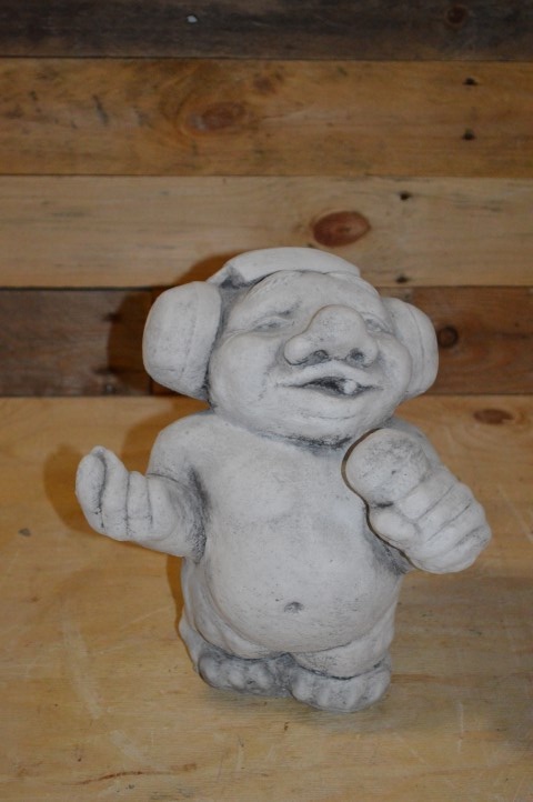 De diskjockey trol is een vrolijk figuur die met zijn koptelefoon op swingt en zingt alsof hij op een festival draait. Dit geinige beeldje brengt meteen sfeer in huis of tuin. Gemaakt van duurzaam beton is hij geschikt voor binnen én buiten. Een origineel cadeau voor muziekliefhebbers of gewoon een grappige toevoeging aan je interieur of buitenruimte.