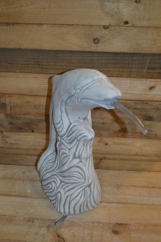 Deze natuurgetrouw vormgegeven dolfijn van beton is voorzien van een waterslang, waardoor hij als waterspuwer perfect geschikt is voor plaatsing bij een vijver of waterpartij. Het gedetailleerde ontwerp geeft de indruk dat de dolfijn uit de golven opspringt. Daarmee voegt hij niet alleen beweging en watergeluid toe, maar ook een decoratief en vrolijk accent in uw tuin. Een echte blikvanger die zowel overdag als ’s avonds sfeer creëert bij uw vijver.