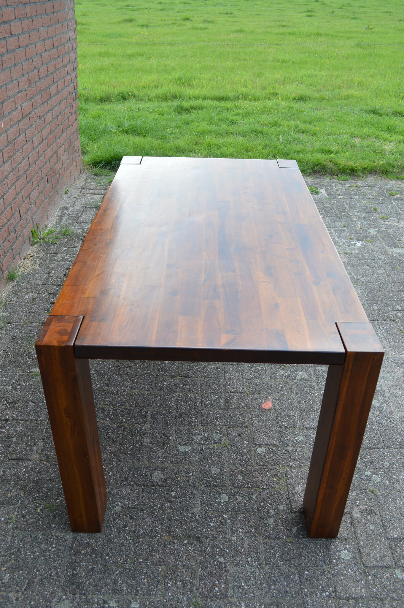 Deze mooie rechthoekige eettafel met robuuste vierkante poten van massief hout staat met zijn koloniale warme donker bruine kleur goed in ieder interieur en is bovendien ideaal om te gebruiken als keukentafel voor het hele gezin, dankzij het grote tafelblad.