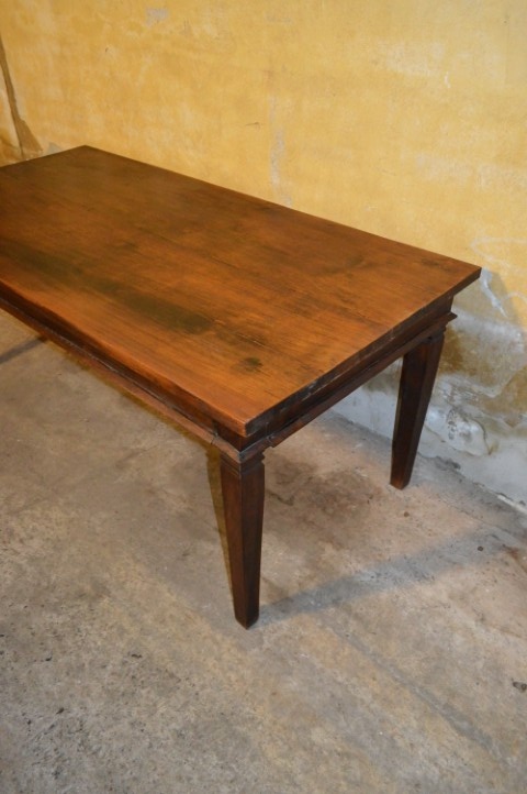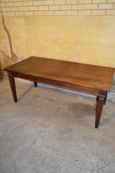 Deze tafel combineert een rustieke look met praktische functionaliteit. Dankzij het tijdloze ontwerp komt hij moeiteloos tot zijn recht in zowel moderne als klassieke interieurs. De tafel heeft gebruikssporen passend bij de leeftijd, wat bijdraagt aan de charme en authenticiteit van massief teak.