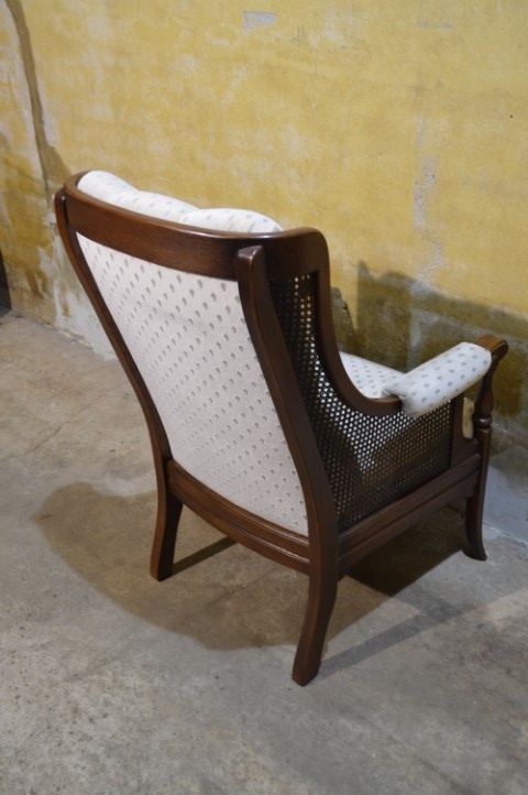Deze eiken armfauteuil met webbing is een sfeervolle en comfortabele stoel met een warme uitstraling. De combinatie van een eikenhouten frame, webbing en een stoffen zitting zorgt voor een tijdloos geheel dat goed past in zowel een landelijk als vintage interieur. De armleuningen bieden extra zitcomfort, waardoor de stoel geschikt is voor dagelijks gebruik. Het betreft een tweedehands fauteuil met gebruikssporen, passend bij de leeftijd en het gebruik.