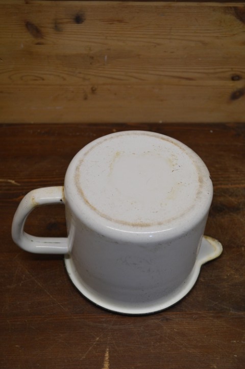 Ouderwetse emaillen po ook wel ondersteek genoemd. De po is wit met een blauw randje. Deze onderteek is tot diep in de jaren 70 nog gebruikt door een vroedvrouw.