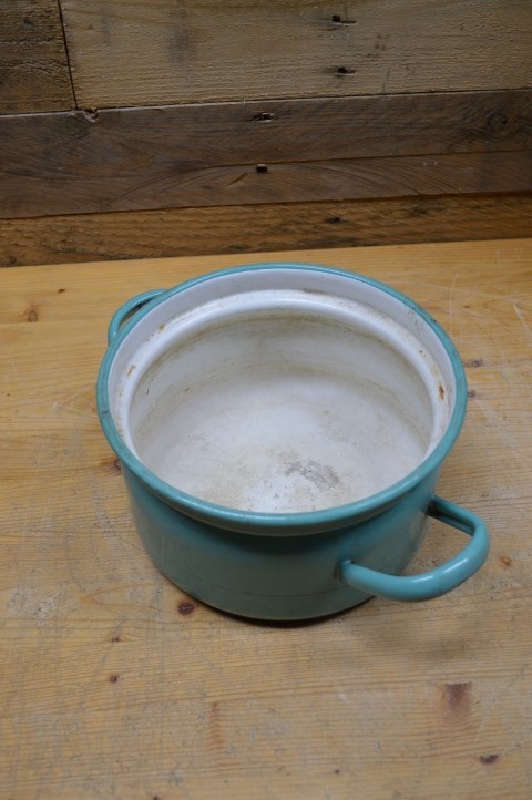 Helaas heeft het pannetje door gebruik enige gebruikssporen opgelopen en is het nu meer bedoeld voor decoratie of als leuke plantenbak. Er is ook geen deksel bij.