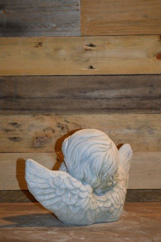 Het betonnen beeld engel met handen onder de kin is veelzijdig: het kan worden geplaatst op een mooi plekje in huis, in de tuin of zelfs op een graf- of gedenkplek. Het charmante beeldje straalt rust en warmte uit en is een mooie toevoeging aan iedere omgeving.