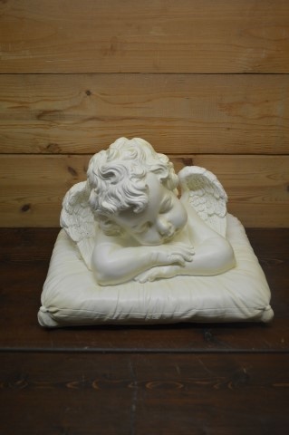 Voeg rust en zachtheid toe aan je interieur met dit ontroerende polyester beeld van een slapende engel op een kussen. De fijne details en zachte vormen maken dit beeldje tot een echte blikvanger, zowel binnen als buiten. Perfect voor op een vensterbank, dressoir of bijzettafel, maar ook prachtig als tuindecoratie op een terras of bij een vijver.