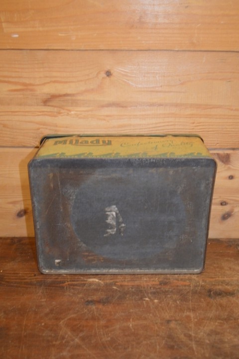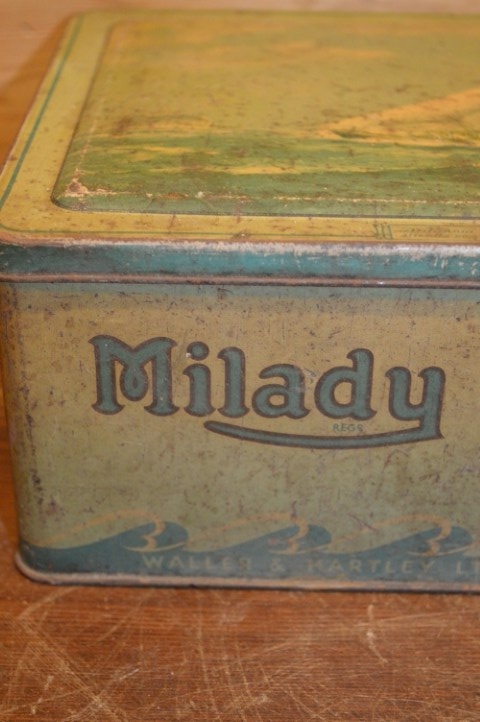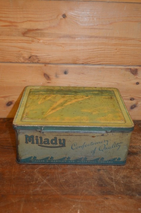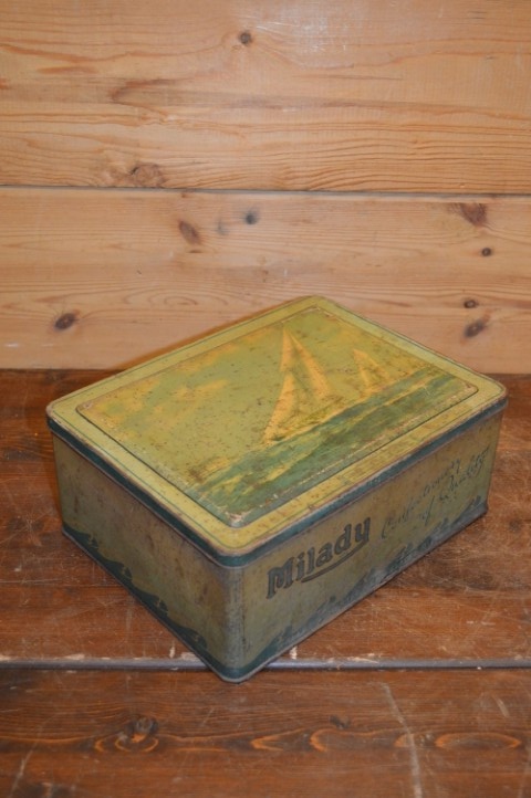 Een echt stukje Engelse nostalgie! Dit vintage toffeeblik Milady “Country Life in England” ademt de sfeer van vervlogen tijden. Op het scharnierende deksel prijkt een gedetailleerde 18e-eeuwse afbeelding van zeilschepen — een ode aan Engels vakmanschap en design.