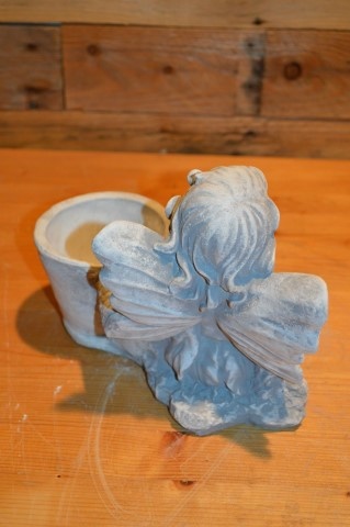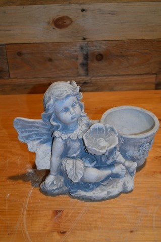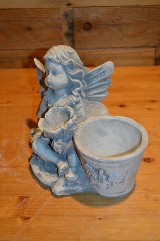 Breng een vleugje zachtheid in huis of tuin met deze betonnen engel met bloembakje. Dit schattige beeldje zit geduldig te wachten op een vrolijk plantje dat zijn bakje mag opfleuren. Gemaakt van duurzaam beton, dus geschikt voor zowel binnen als buiten. Leuk voor op een dressoir, vensterbank of in de tuin met bijvoorbeeld een primula of cactus erin — een charmante aanwinst voor elke plek!