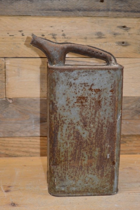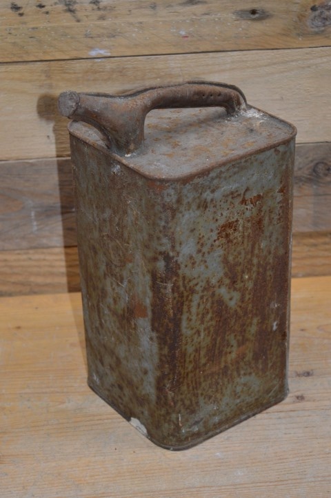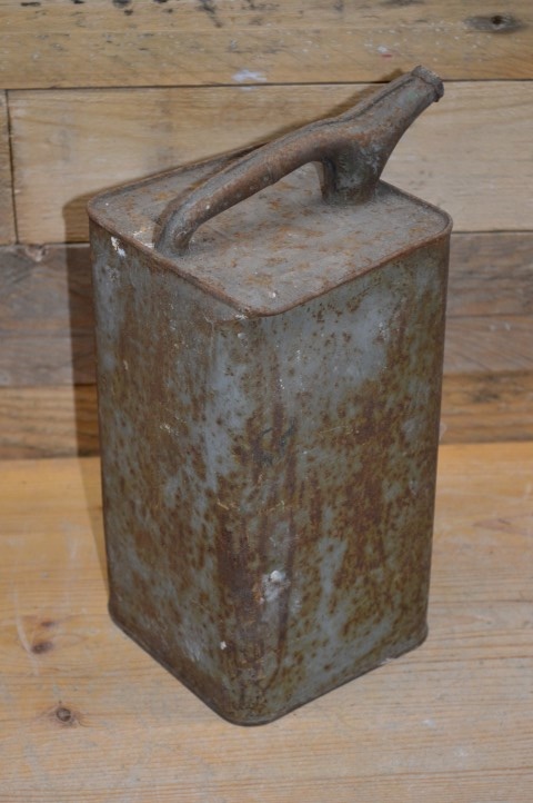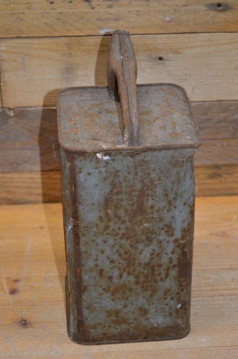 Omdat het een oud blikje uit de jaren 50 betreft zijn er wel een aantal gebruikssporen te vinden, maar door zijn relatief kleine formaat kan deze mooie petroleumkan nog steeds goed gebruikt worden als decoratief oliekannetje voor op een dressoir, bijzettafel of vensterbank.