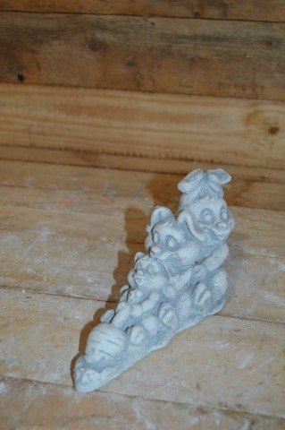 Voeg speelsheid toe aan uw tuin met deze betonnen familie haas. Drie vrolijke haasjes trekken samen een wortel.