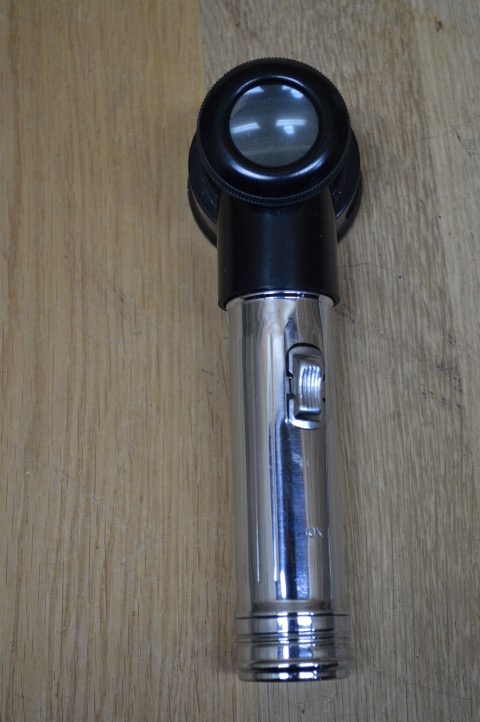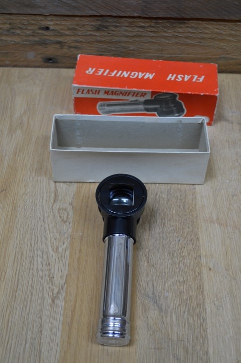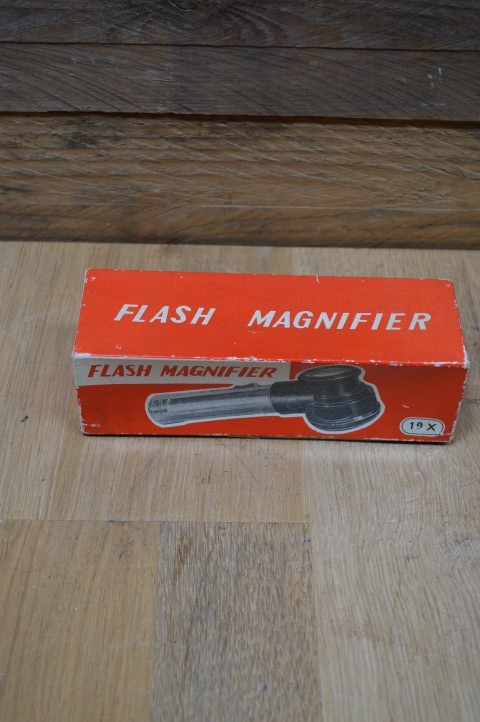 Het is een gebruikte flash magnifier met kleine gebruikssporen. Hij is niet getest maar zou, zelfs als hij het niet doet ook erg leuk zijn voor decoratie.