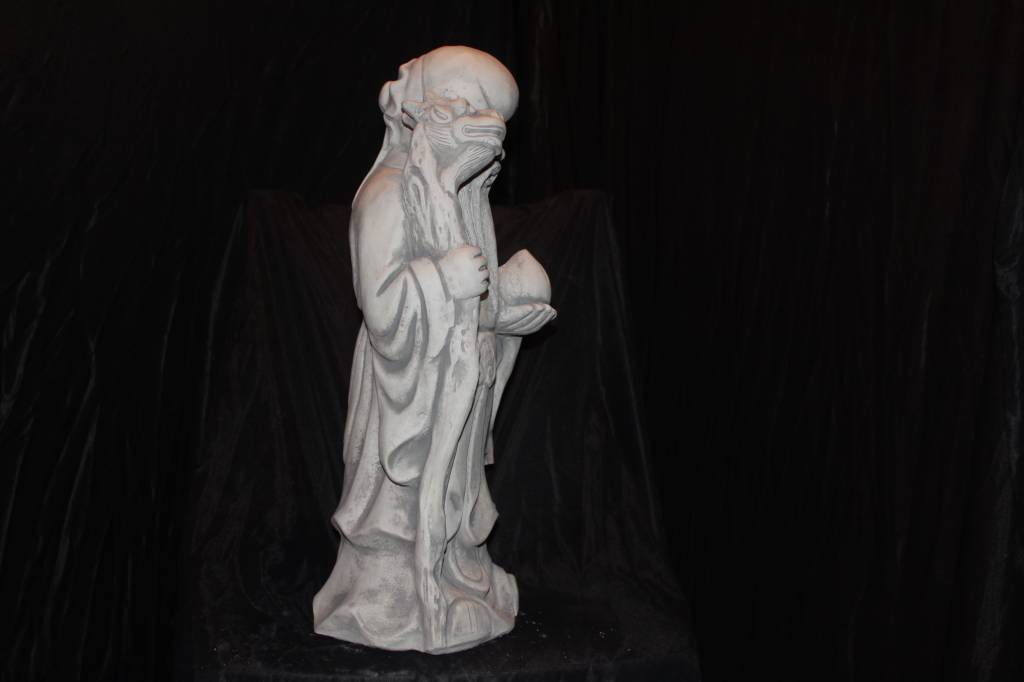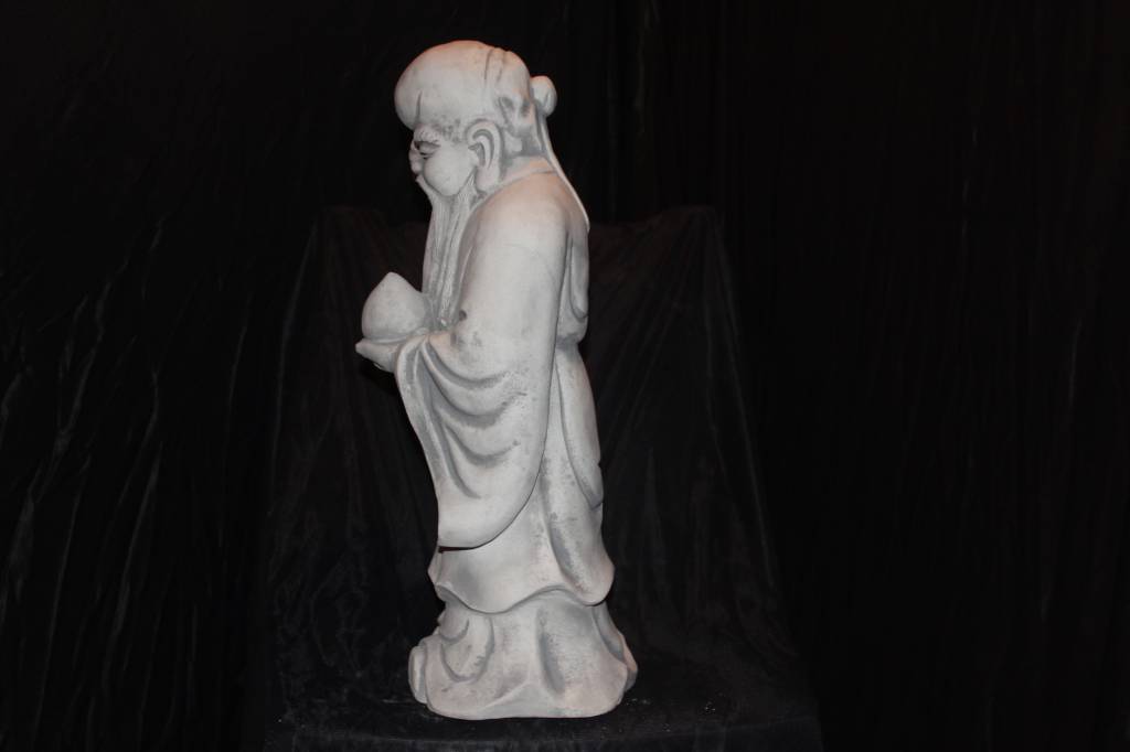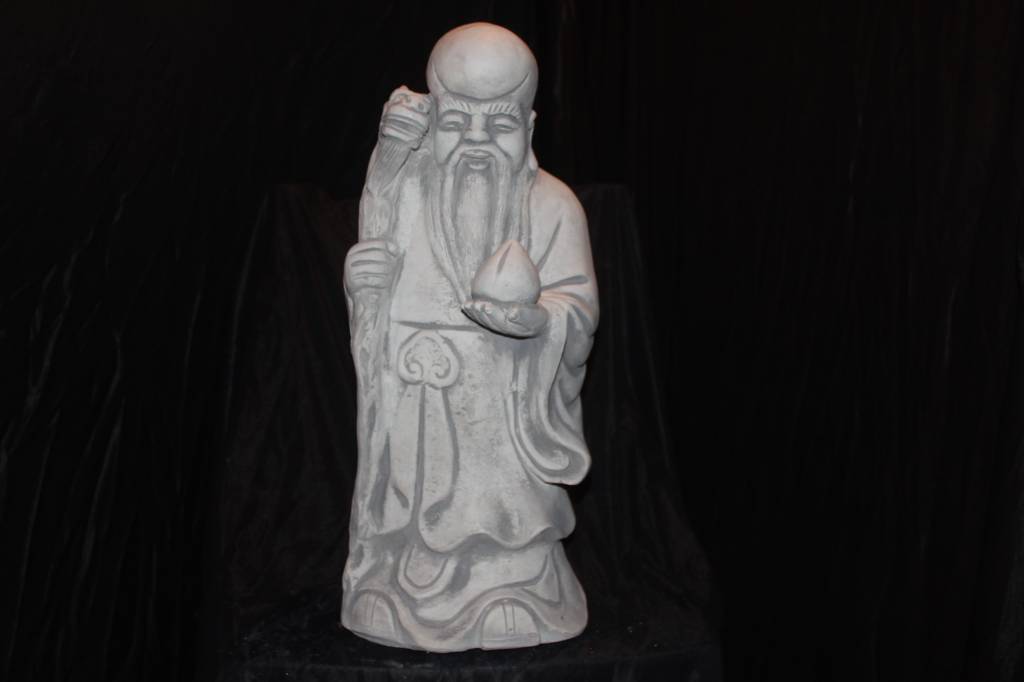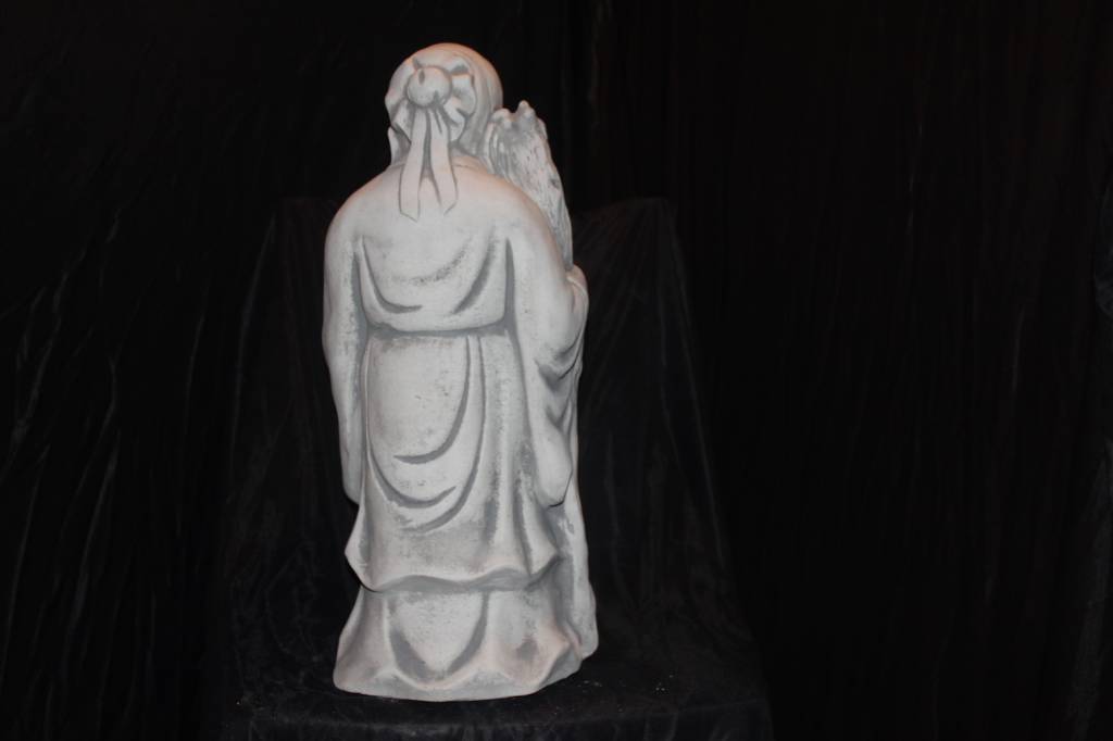 betonnen beeld Chinese geluksgod Fu Xing is een prachtig symbool van voorspoed en harmonie. Fu Xing is één van de drie klassieke Chinese geluksgoden en staat voor het brengen van geluk vanuit alle vier de windstreken. Het beeld is vervaardigd uit stevig beton en geschikt voor zowel binnen als buiten. Zet hem in de tuin, op een terras of in huis om sfeer en betekenis toe te voegen aan je interieur of buitenruimte. Een tweedehands beeld vol karakter, waarmee wij graag een beetje geluk bij u thuis brengen.