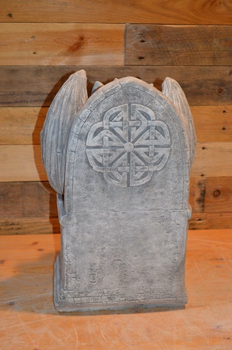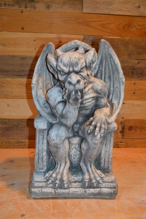Zittende Gargoyle op troon is een gotisch geïnspireerd betonnen beeld van een gevleugelde waterspuwer met een agressieve uitdrukking. Zittend op een sierlijke troon, rust hij met zijn klauw onder de kin – alsof hij nadenkt of de wacht houdt. Deze Gargoyle is een echte blikvanger voor liefhebbers van middeleeuwse sfeer en mystiek. Gemaakt van duurzaam gietsteen en geschikt voor plaatsing in de tuin, bij een vijver of zelfs binnen in een gotisch interieur. De open vleugels en scherpe blik zorgen voor een indrukwekkende uitstraling.