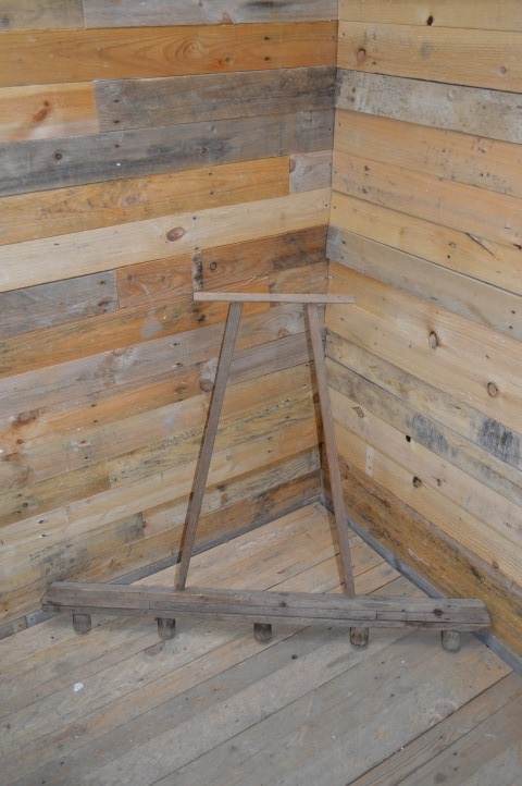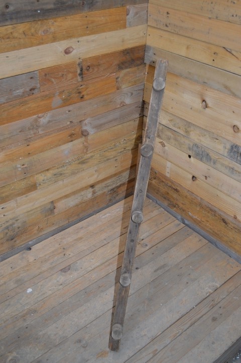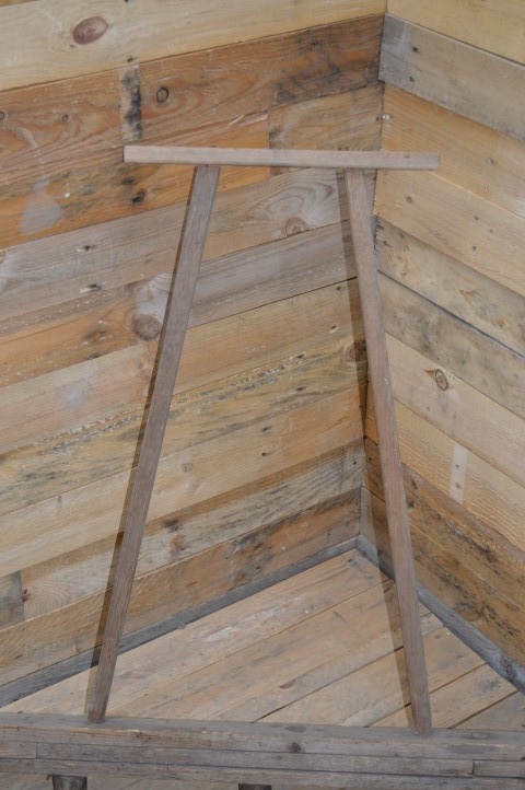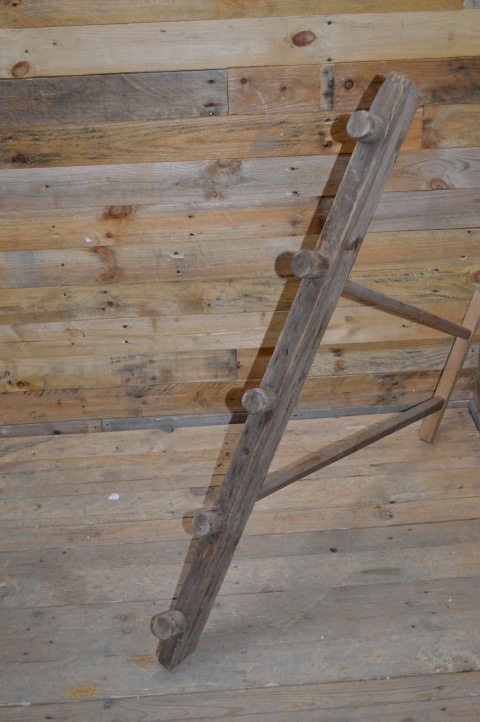 Deze houten gatensteker is zelfbouw en tegen houtworm behandeld. Daarnaast heeft deze agrarische decoratie door eerder gebruik ook wat andere gebruikssporen opgelopen, maar is desondanks nog zeker een kijkje waard voor de liefhebber van ouderwetse landbouwwerktuigen.