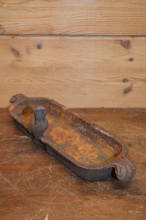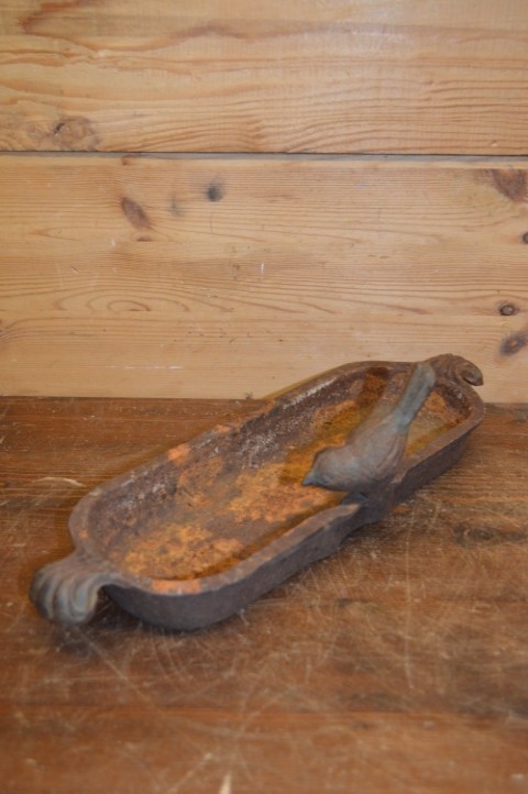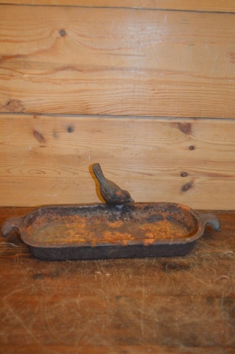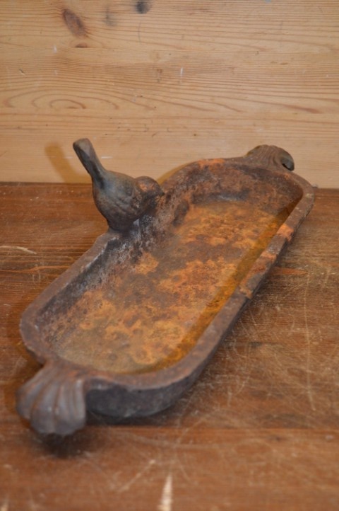 Breng leven in je tuin met dit oude gietijzeren vogelbadje met vogeltje. Het stevige, ovale schaaltje is met traditionele technieken gegoten en voorzien van een charmant vogelfiguurtje dat over de rand waakt. Door het gewicht en de robuuste vorm blijft het badje stabiel staan, terwijl de lichte roestvorming zorgt voor een prachtig geleefd uiterlijk. Ideaal als vogelbad, drinkbak of voerbak, maar ook gewoon als decoratief accent in de tuin. Een stijlvolle manier om vogels én sfeer naar buiten te halen.