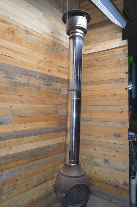 Deze luxe buitenhaard is niet alleen een functionele houtkachel, maar ook een echte sfeermaker. Dankzij de door de vorige eigenaar aangebrachte, twee meter lange dubbelwandige pijp met vonken vangende kap, kan de haard zelfs veilig onder een afdak gebruikt worden. De terrashaard is afgewerkt met een degelijke hittebestendige coating en heeft normale gebruikssporen, passend bij een tweedehands exemplaar.