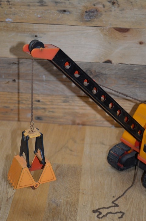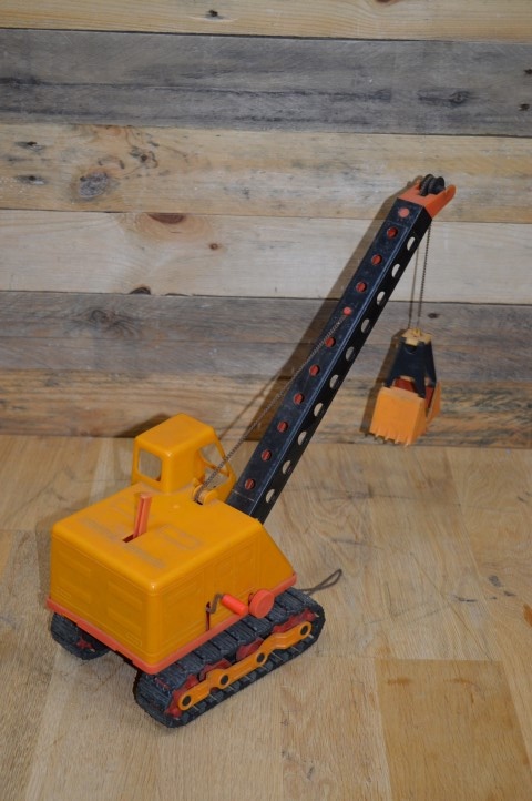 Prachtige graafmachine uit de jaren 80. Tenminste 2 generatie hebben hiermee al gespeeld. De dragline is aan een servicebeurt toe maar nog steeds een fantastisch stukje speelgoed.
