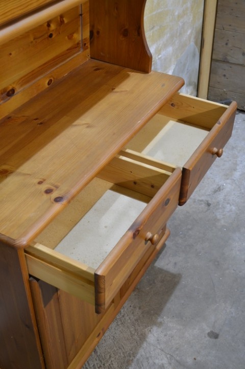 De kast is tweedehands en heeft gebruikssporen. Door werking van het hout kunnen kleine afwijkingen aanwezig zijn.
