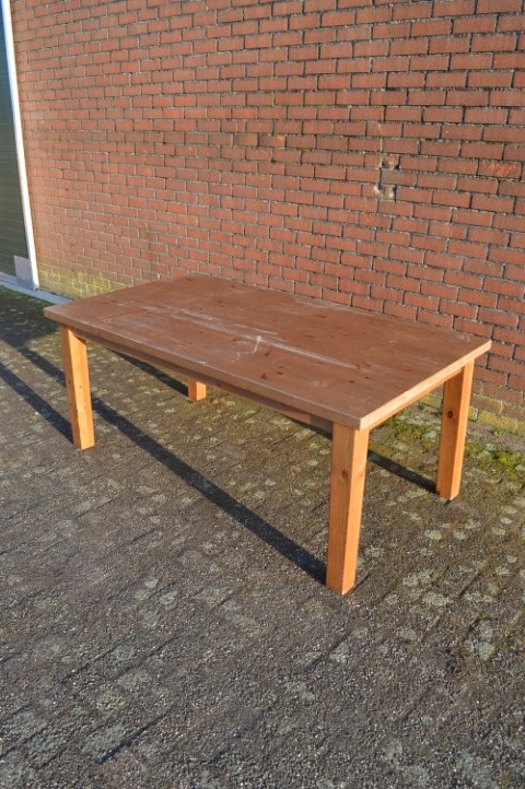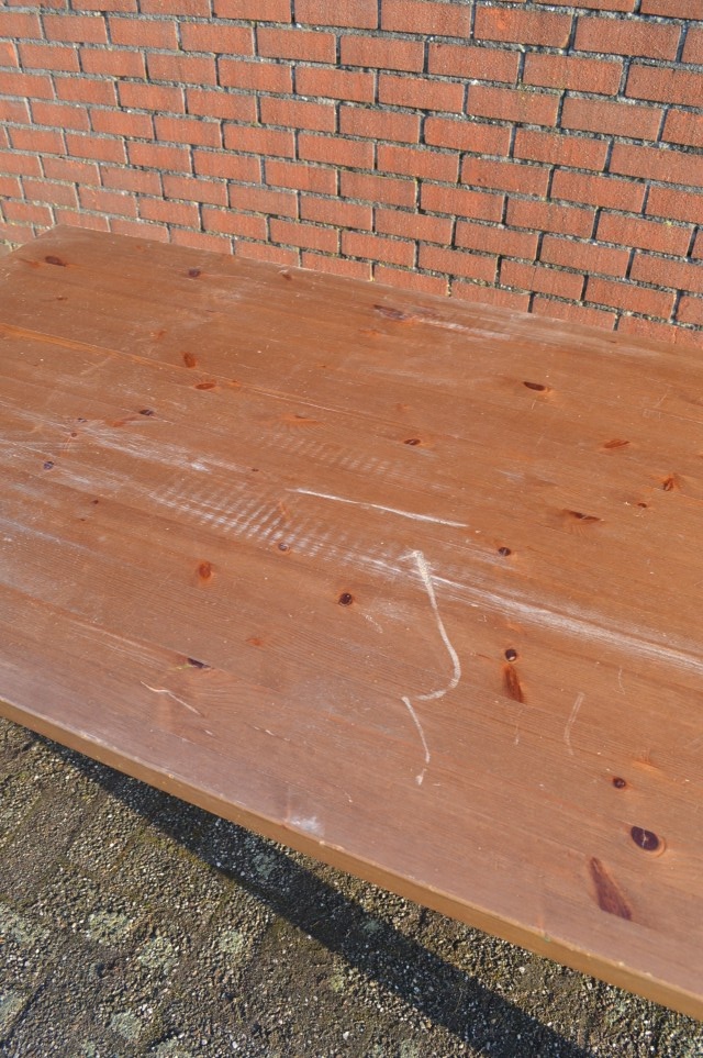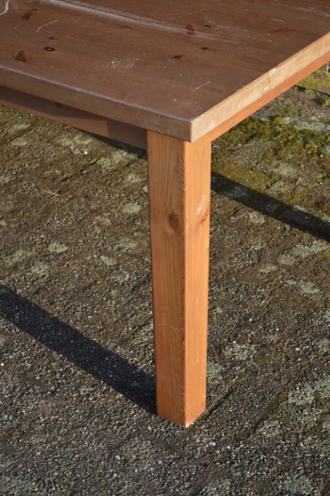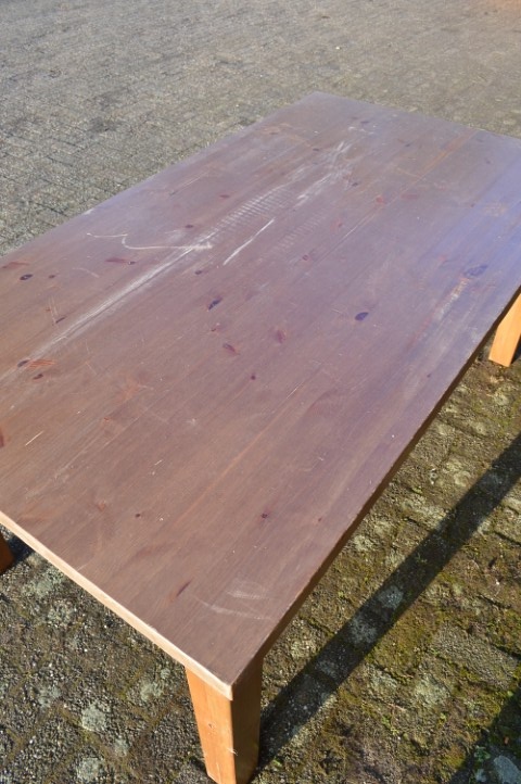 De grenen eettafel opknap is een lange tafel waar gemakkelijk zo’n tien personen aan kunnen plaatsnemen. Daardoor is hij ideaal als gezinstafel, maar ook uitstekend te gebruiken als knutseltafel of werktafel. De tafel heeft gebruikssporen en kan met wat aandacht weer helemaal opgefrist worden. De poten zijn demontabel, wat het vervoer makkelijker maakt. Opnieuw lakken zal de tafel weer een frisse uitstraling geven.