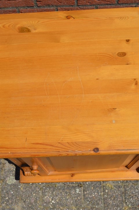 Het kastje heeft kleine gebruikssporen in de vorm van krassen op het bovenblad verder is het in prima staat.
