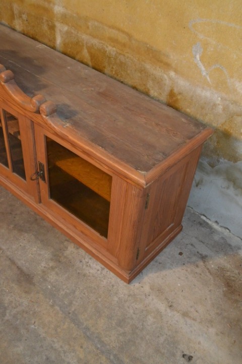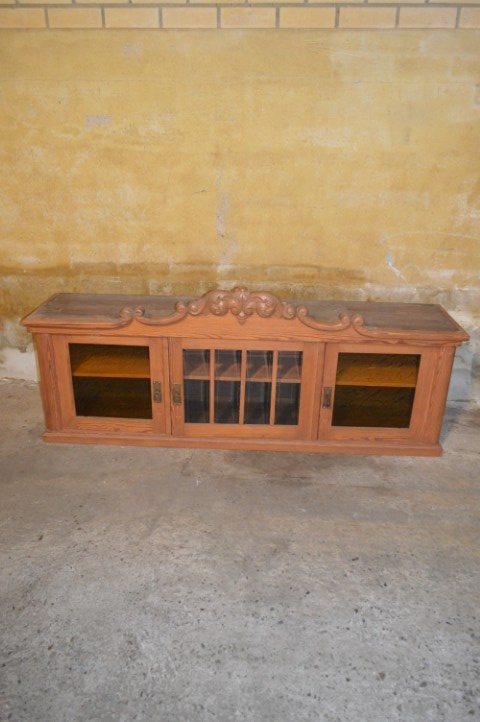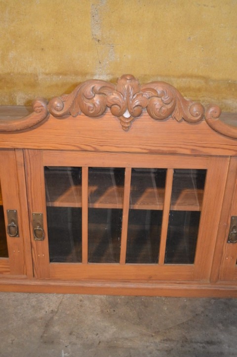 Deze grenenhouten bovenkast met kuif is een charmant en karaktervol meubel dat perfect past in zowel landelijke als creatieve interieurs. De kast heeft prachtige details zoals een sierlijke kuif, facetgeslepen middelste ruitjes en twee geelgetinte buitenruitjes die het geheel een uniek uiterlijk geven.