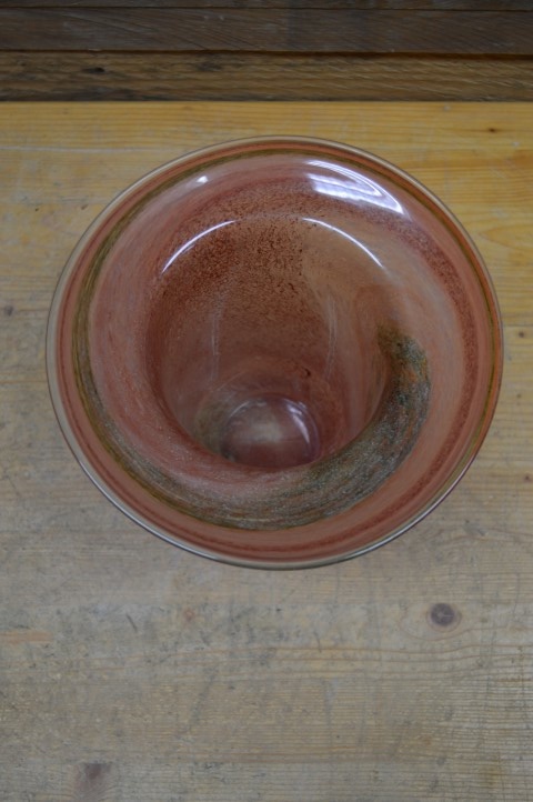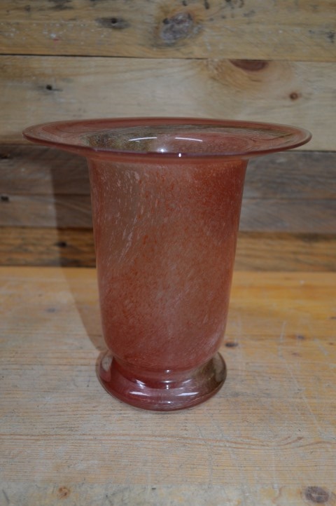 Deze grote design vaas van Duitse makelij is gemaakt van rood loodkristalglas en fleurt met een mooie bos bloemen of decoratieve takken in een handomdraai uw dressoir of tafel op.