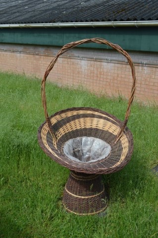 De grote mand met handvat is gemaakt van stevig gevlochten wilgentenen en biedt voldoende ruimte voor een grote plant, maar kan ook gebruikt worden als decoratieve mand bij feesten, bruiloften of als opvallende accessoire in huis. Het tweekleurige vlechtwerk en het royale formaat maken dit een echte blikvanger die overal goed tot zijn recht komt.
