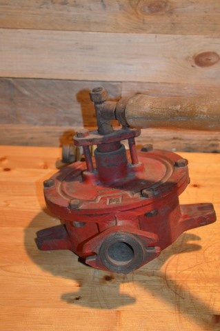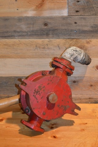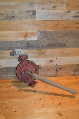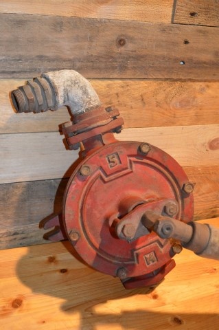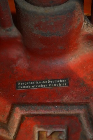 Wat een bijzonder stuk geschiedenis! Deze gietijzeren vleugelpomp uit de voormalige DDR is een authentiek industrieel object dat direct de aandacht trekt. Pompen als deze werden vroeger gebruikt door de brandweer om kleine brandjes in fabriekshallen te blussen, dankzij hun robuuste constructie van gietijzer met een bronzen binnenwerk.