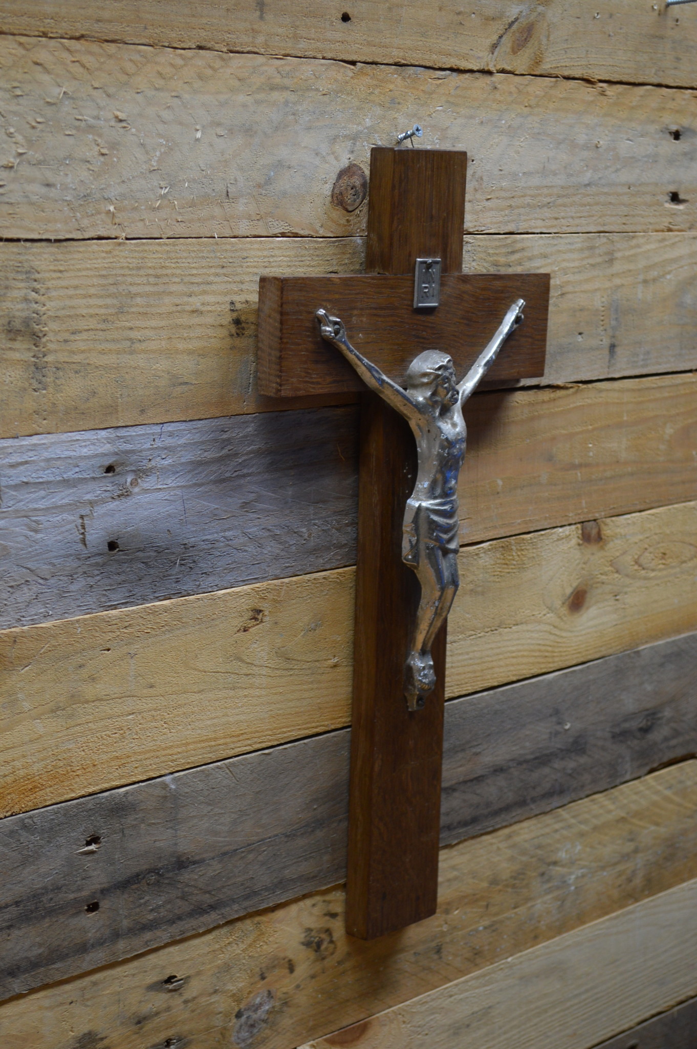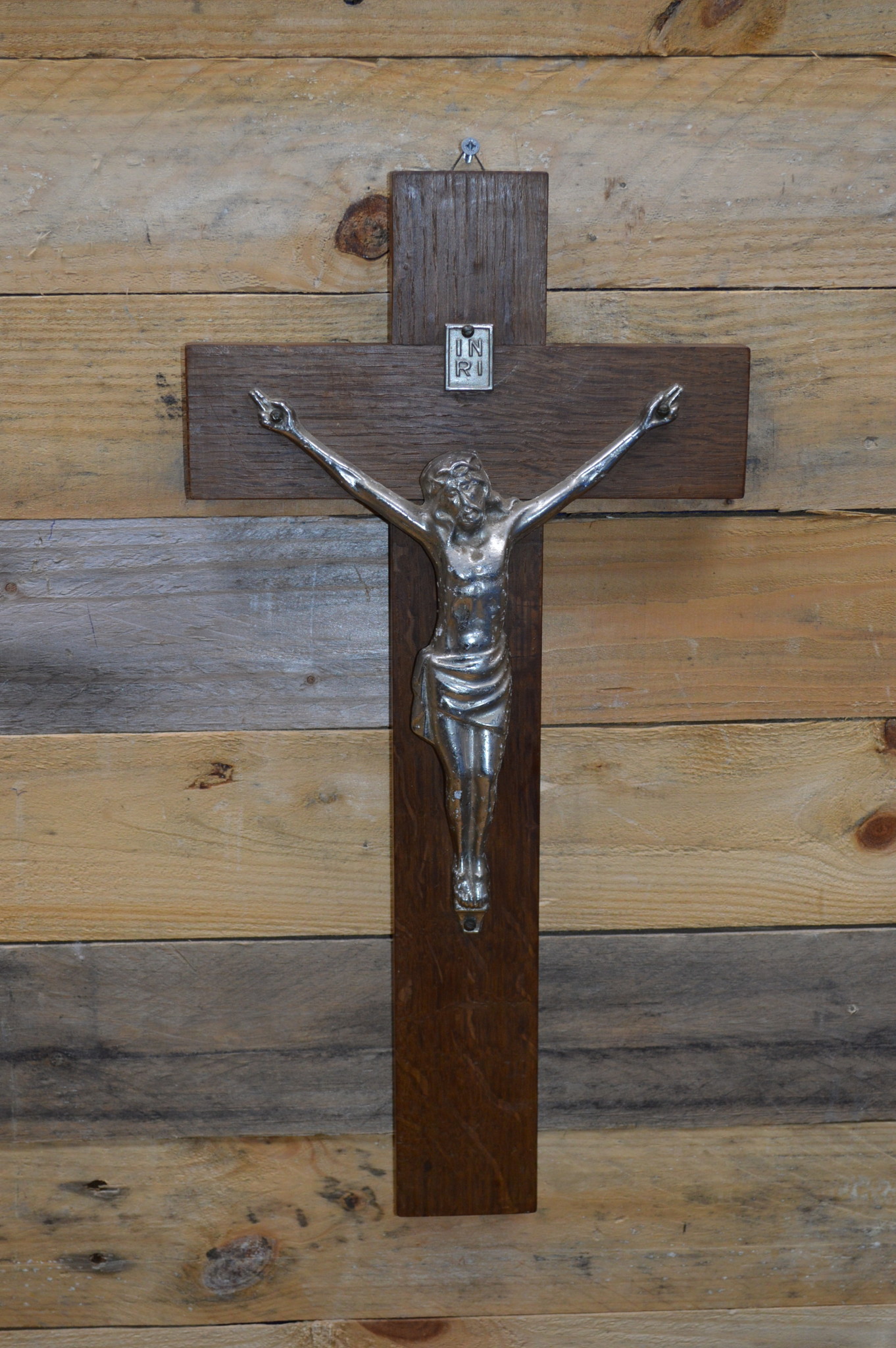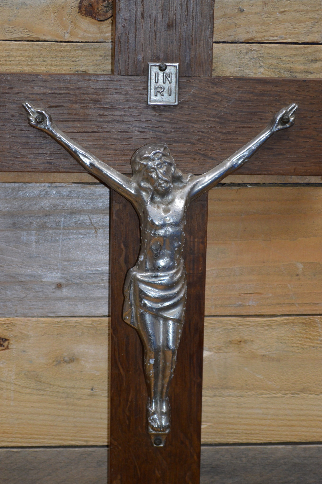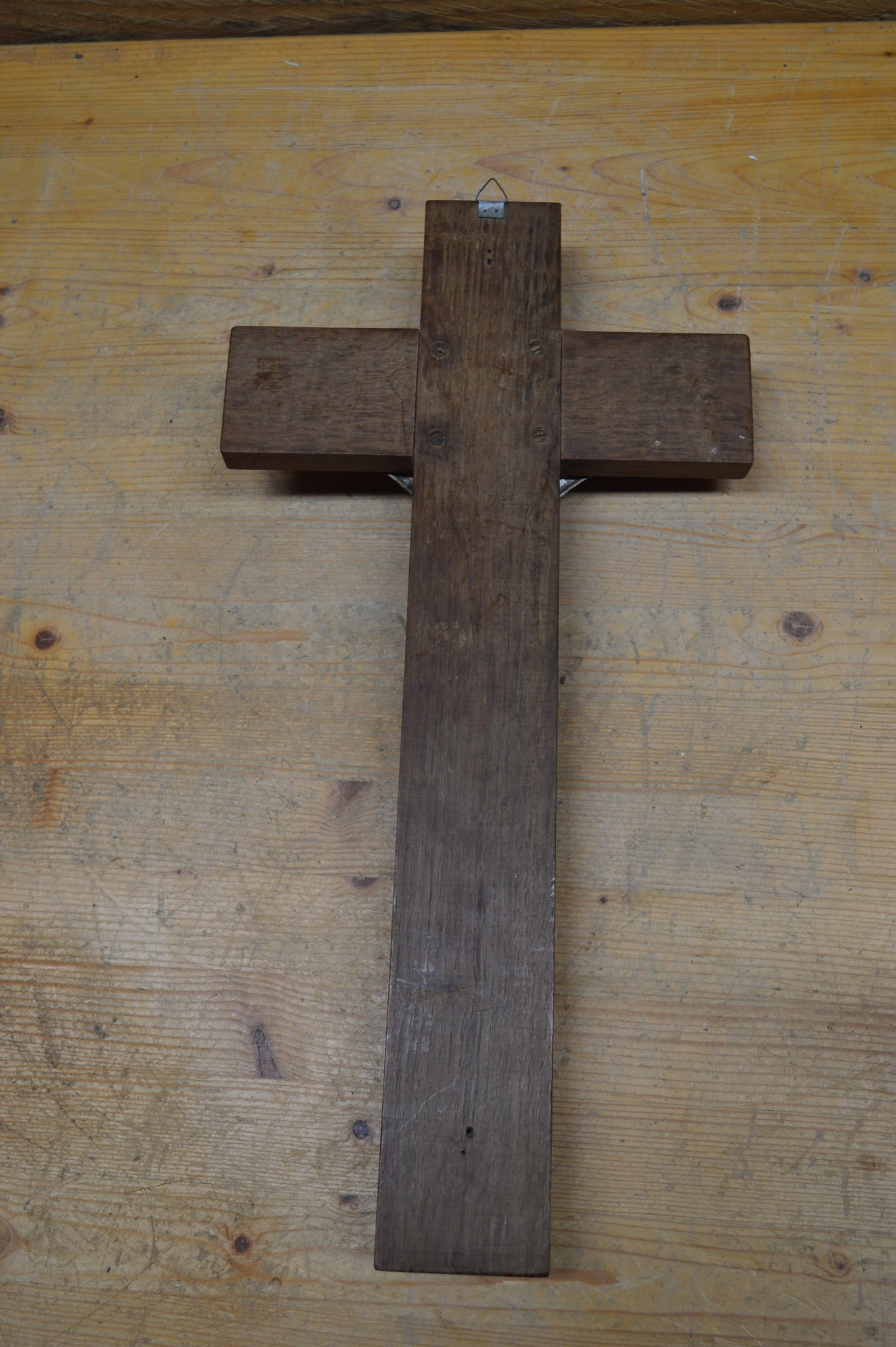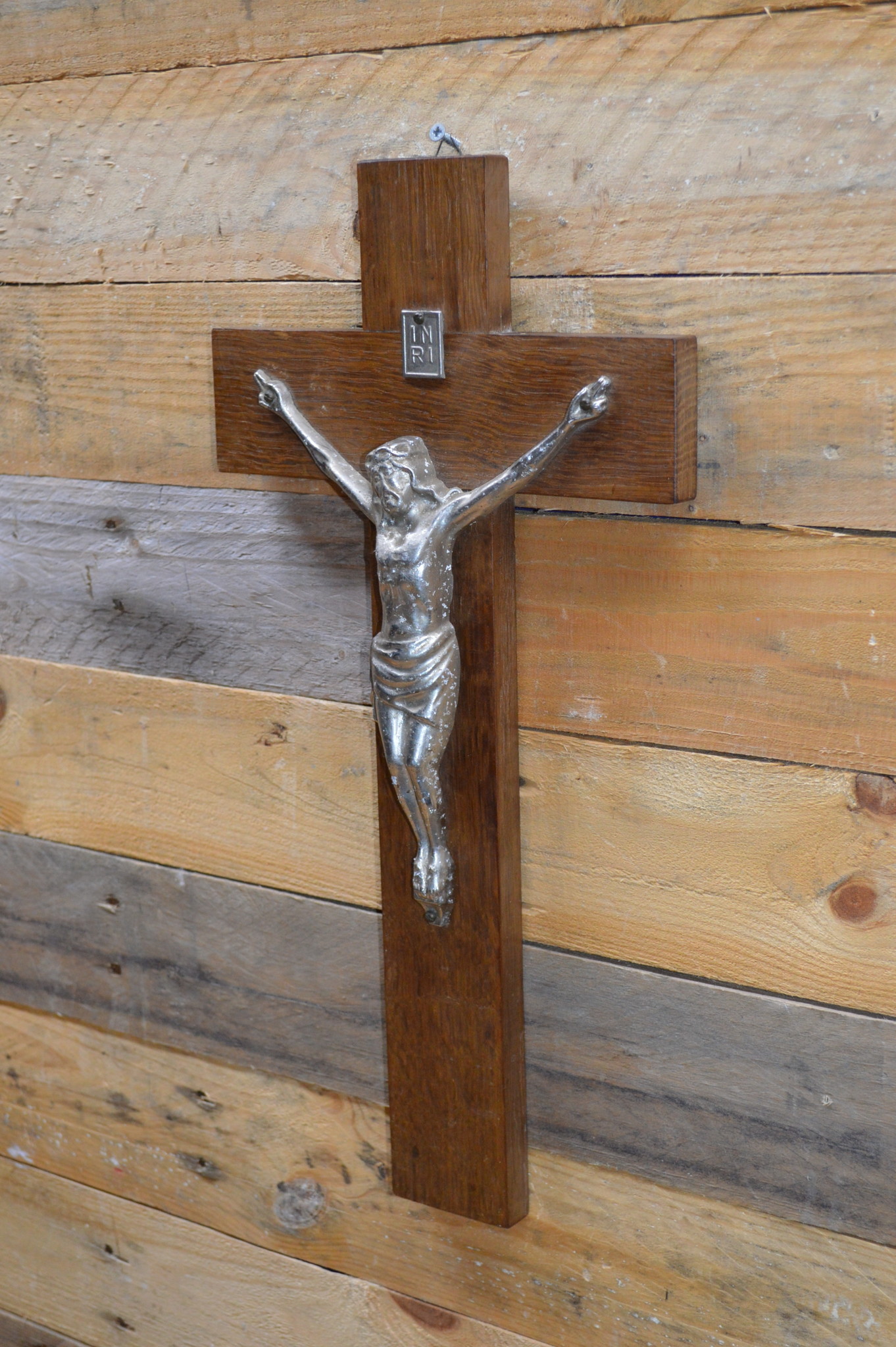Dit houten kruis met Jezusbeeld aluminium is een prachtig klassiek wandkruis gemaakt van eikenhout, met een fraai Jezusbeeld van aluminium. Ideaal voor aan de wand in de woonkamer, slaapkamer of andere sfeervolle ruimte. Het kruis is eerder gebruikt en vertoont lichte gebruikssporen, maar verkeert nog steeds in goede staat. Een stijlvol religieus decoratiestuk dat past in elk interieur en zeker gewaardeerd wordt door liefhebbers van klassieke woondecoratie.