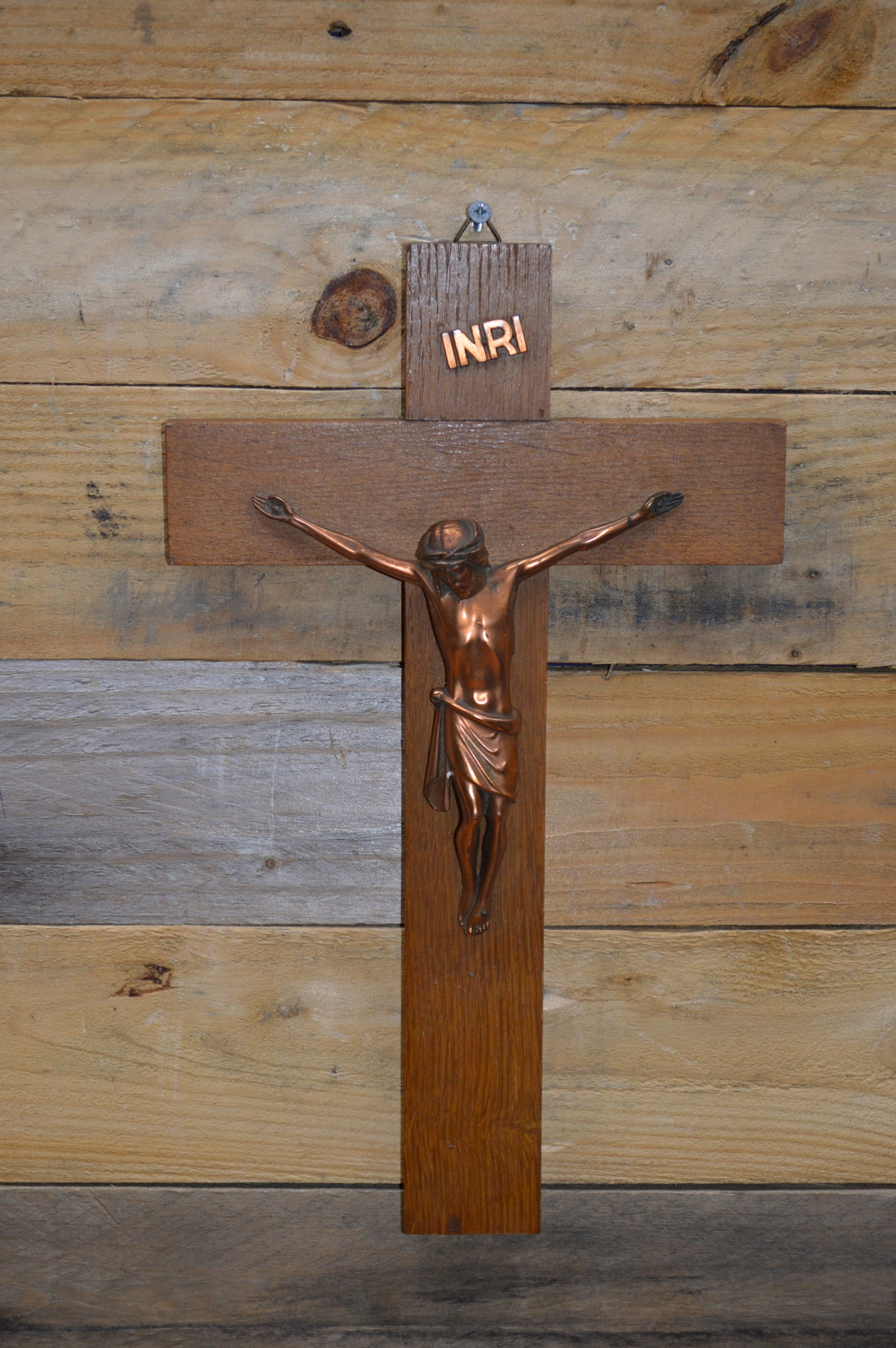 Heilig kruis met koperen Jezus beeld. Dit klassieke kruisbeeld met koperen beeld is ideaal om te gebruiken als decoratie aan de wand en hangt overal goed. Dit prachtige eiken kruis is daarnaast erg mooi om te zien voor de liefhebbers en is erg geschikt om bijvoorbeeld in de woonkamer of slaapkamer op te hangen.