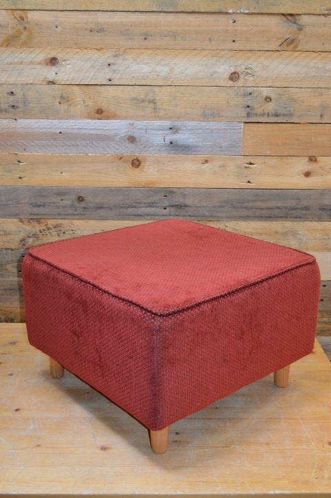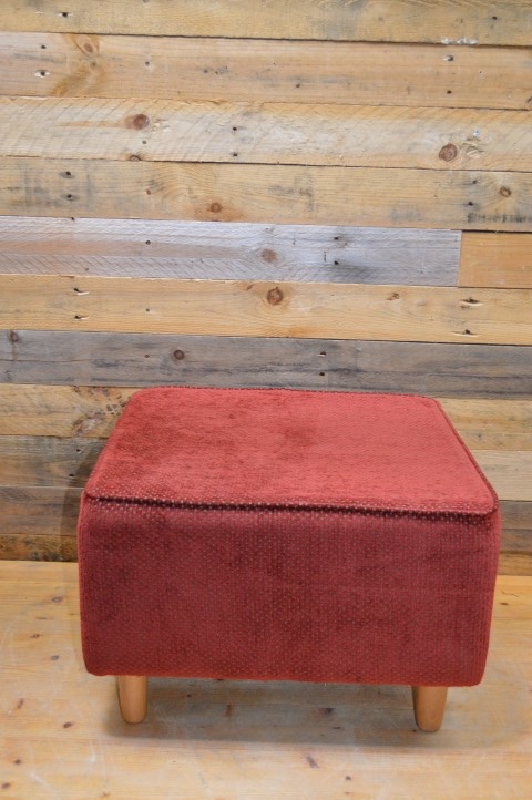 Mooie gestoffeerde rode hocker met houten poten waar u comfortabel uw benen op neer kunt leggen wanneer u op de bank of in een comfortabele stoel zit, maar die daarnaast ook uitstekend als zitkrukje gebruikt kan worden. De bewerkte velours achtige rode stof geeft het voetenbankje bovendien een luxe uitstraling die goed past bij een mooie stoffen bank of stoel, maar die er ook elders in huis goed uit ziet.