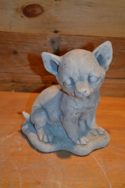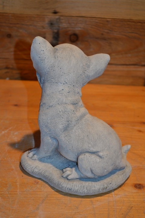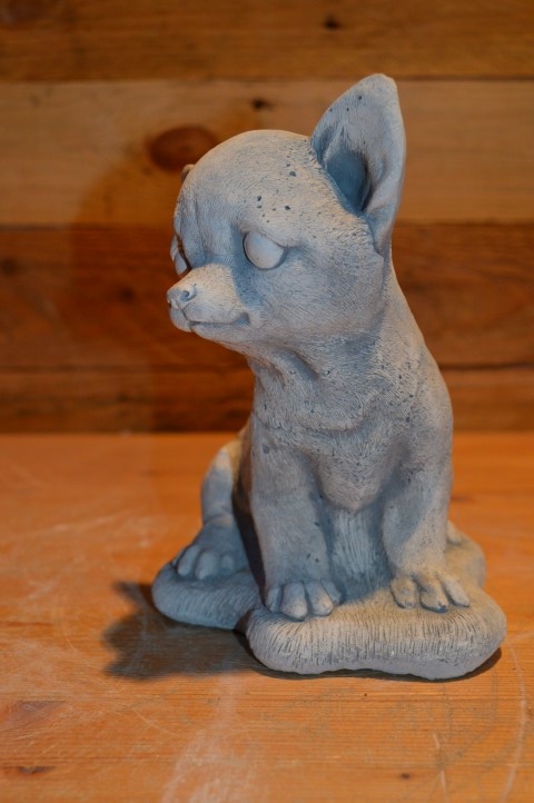 De zittende Chihuahua is een klein betonnen beeldje met grote uitstraling. Met zijn trouwe blik lijkt hij u rechtstreeks aan te kijken, alsof hij uitnodigt om te spelen. Dit charmante beeldje is perfect voor hondenliefhebbers en vormt een leuke aanvulling op elk interieur of tuin. Gemaakt van weerbestendig beton kan hij zowel binnen als buiten geplaatst worden.
