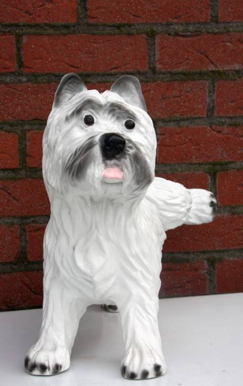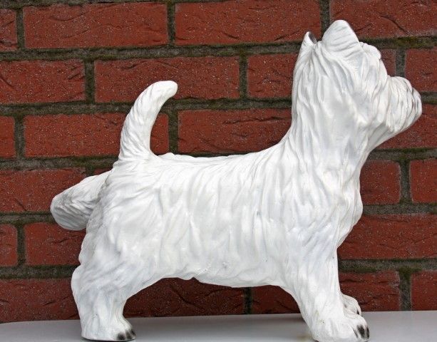 Deze kunststof hond terriër is gemaakt van duurzaam polyester en daardoor volledig weerbestendig. Zet hem gezellig naast de vijver, op het gazon of als blikvanger op het terras. Ook binnenshuis zorgt dit vrolijke hondje voor een warme en levendige sfeer. Een onderhoudsvriendelijk decoratiebeeld waar je lang plezier van hebt.