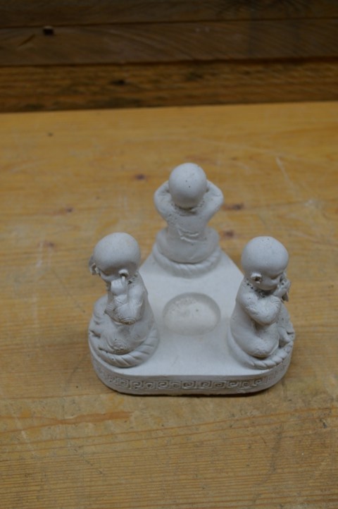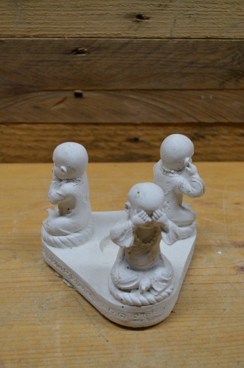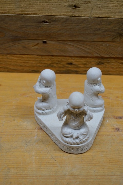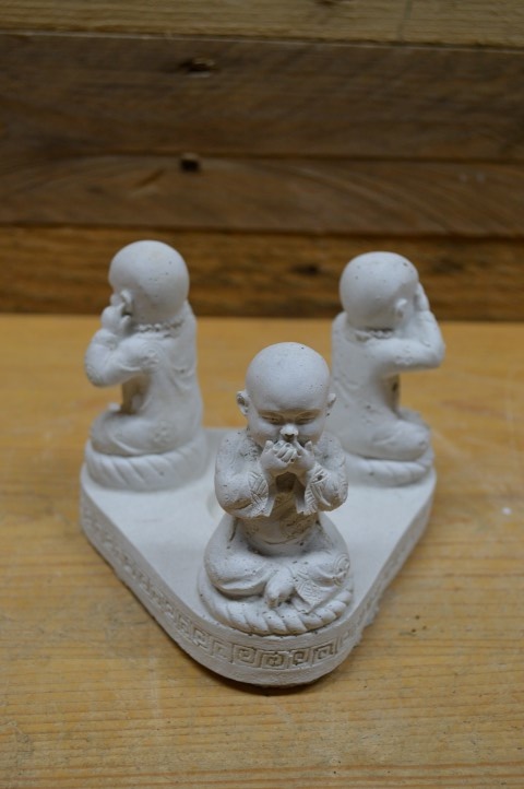 Dit betonnen beeld met drie boeddha’s die horen, zien en zwijgen uitbeelden is niet alleen symbolisch maar ook functioneel. In het midden is ruimte voor een waxinelichtje, wat het beeld extra sfeer en warmte geeft. Het spreekwoord komt uit de leer van de Chinese filosoof Confucius en staat voor aandacht, zelfbeheersing en innerlijke rust. Gemaakt van beton (gietsteen), dus stevig en geschikt voor binnen of een beschutte buitenplek. Perfect voor een meditatieruimte, rusthoekje of spiritueel interieur.