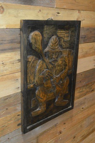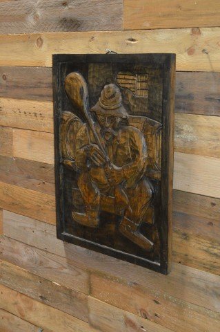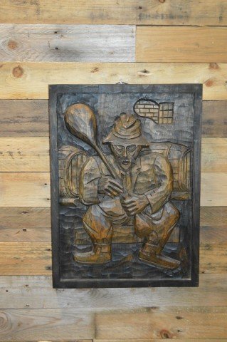 Breng kunstzinnige eenvoud in huis met dit houtsnijwerk paneeltje van een man in een wijnkelder. Het beeld toont een man zittend op een krukje in een simplistische, minimalistische stijl die juist daardoor krachtig en intrigerend is. Het paneeltje is een decoratieve aanwinst voor aan de muur en trekt de aandacht door zijn subtiele maar sterke weergave. Ideaal voor woonkamers, kantoren of gezellige hoekjes in huis waar kunst en sfeer samenkomen.