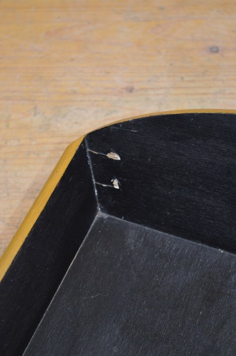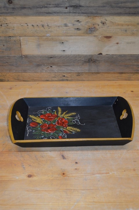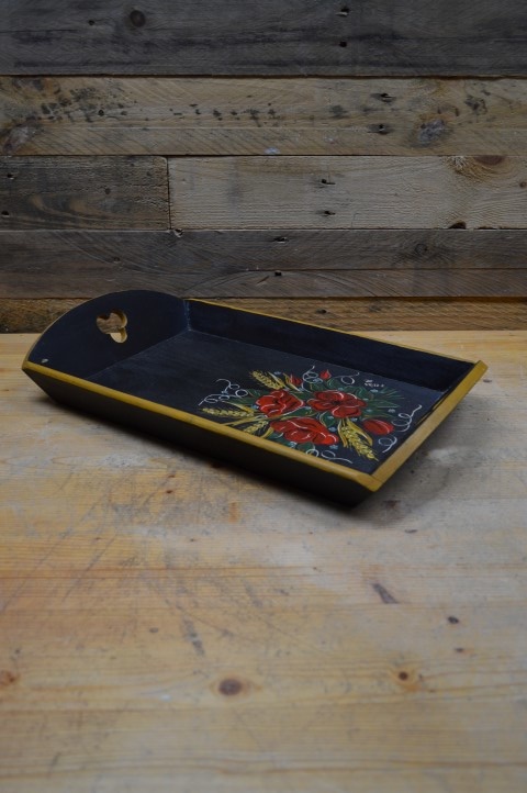 Dit mooie geschilderde dienblad of serveerblad heeft in een vorig leven wel enkele gebruikssporen opgelopen, maar verkeert ondanks het eerdere gebruik nog steeds in goede staat en past uitstekend in vrijwel ieder interieur.