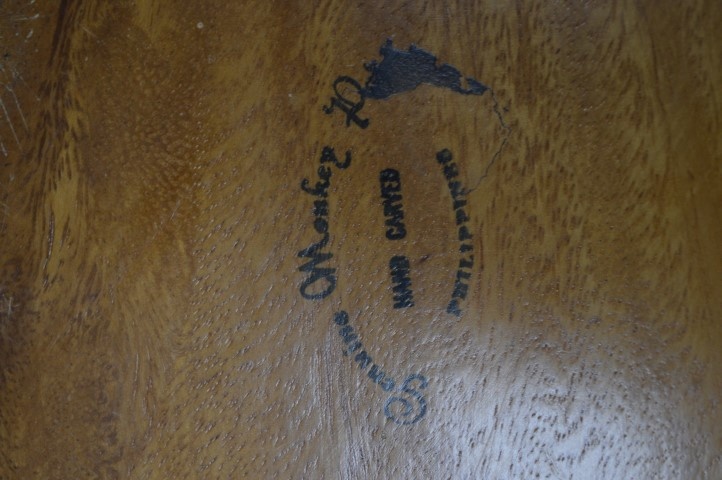 Deze houten schaal is in de Filipijnen met de hand gemaakt uit echt monkey pod hout en hoewel de schaal door eerder gebruik enige gebruikssporen heeft opgelopen is deze prachtige decoratie nog zeker een kijkje waard.