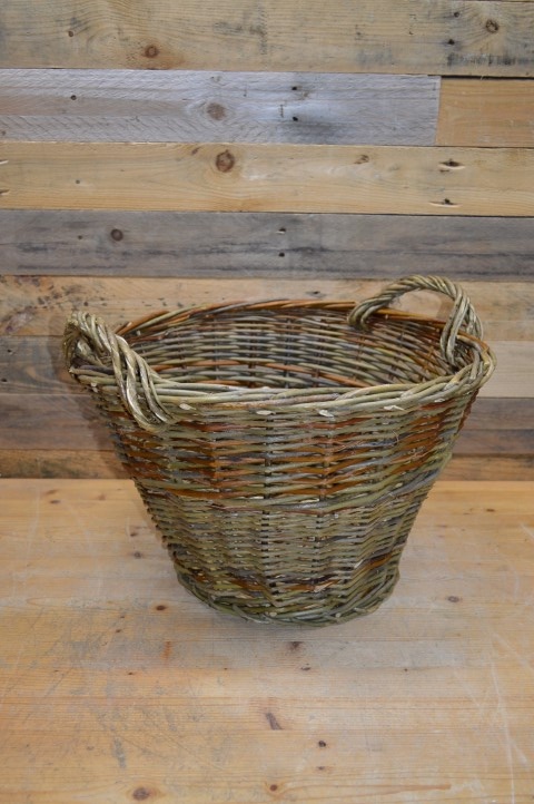 Een ideale mand om het hout bij de haard of kachel te zetten. Heel goed te gebruiken als kleine aardappelmand of in de oogsttijd als appel of peren mand. Schitterend om bijvoorbeeld een grote Hortensia of andere mooie plant in te planten. (als plantenmand wel eerst bekleden met plastic)