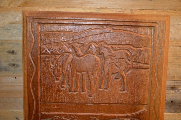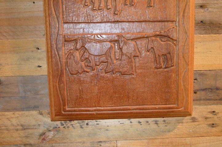 Dit vintage minimalistische houtsnijwerk met paarden is gemaakt van massief hout en een echte blikvanger voor paardenliefhebbers. Het ornament kan aan de muur worden gehangen of elegant op een kastje of bijzettafeltje worden geplaatst. De combinatie van ambacht en minimalistisch design maakt het geschikt voor ieder interieur.