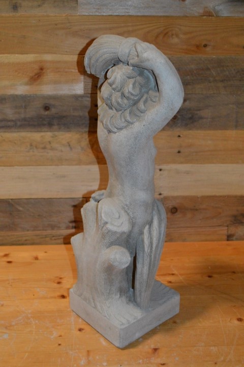 Deze jonge man stelt het jaargetijde zomer voor. Het is een van vier beeldjes die alle seizoenen vertegenwoordigen. Mooi om op een sokkel of pilaar te zetten op één of alle vier hoeken van uw gazon. De overige seizoensbeelden – lente, herfst en winter – vindt u elders op deze site. Dit betonnen tuinbeeld straalt de levendigheid en warmte van de zomer uit.